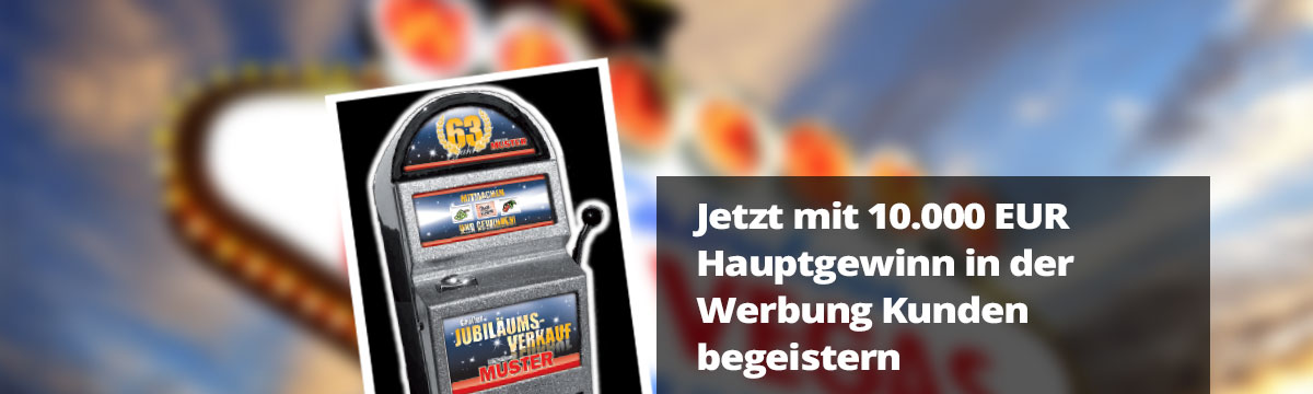 Die Absicherung des Hauptgewinns, der einarmige Bandit und die Trostpreisprogrammierung sind in der Leihgebühr von 999 EUR für das 3-tägige Event enthalten.